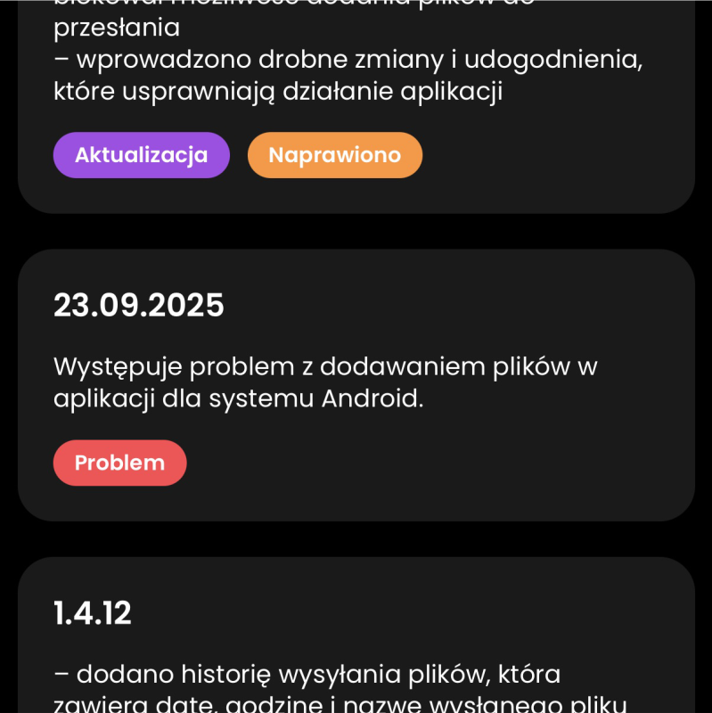 There is a problem with adding files in the Android app.